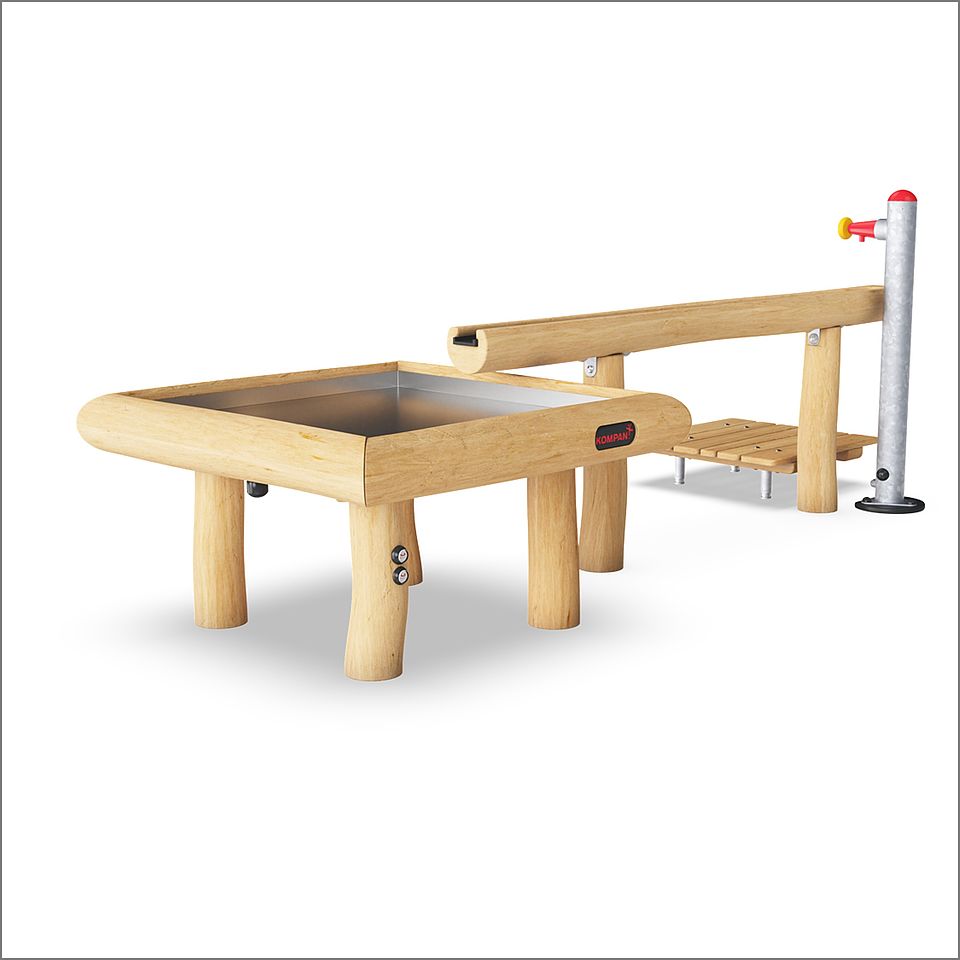 Der Wassertisch bietet Platz für verschiedene Materialien, die über den leicht geneigten Kanal transportiert werden können. So entstehen immer neue Spielideen. Dabei werden ganz nebenbei Kreativität, Denken und soziale Fähigkeiten gefördert.